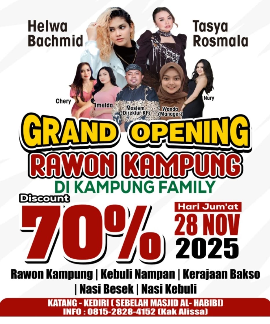 Kampung Family Kediri terlihat berbenah. Layaknya hajatan pengantin. Namun ternyata tengah mempersiapkan Grand Opening Rawon Kampung, salah satu menu pada 28 November 2025.